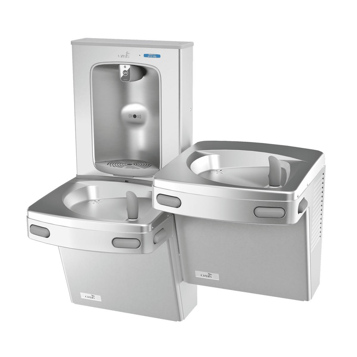 Oasis bottle filling station with dual fountains